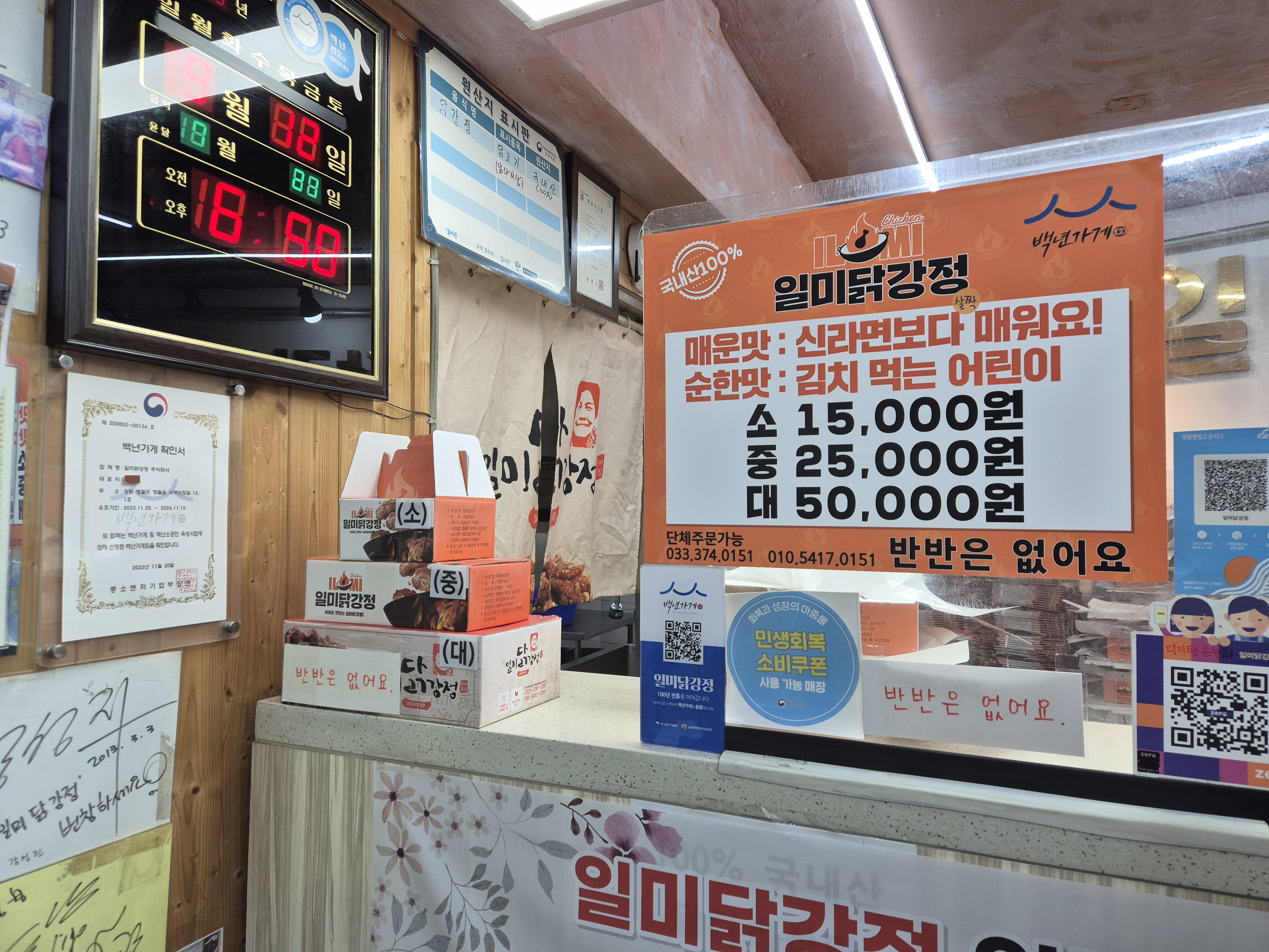 가나닭강정은 점포가 나란히 2개나 있어서 평소에 얼마나 줄이 길지 상상이 되는 곳이었다.
