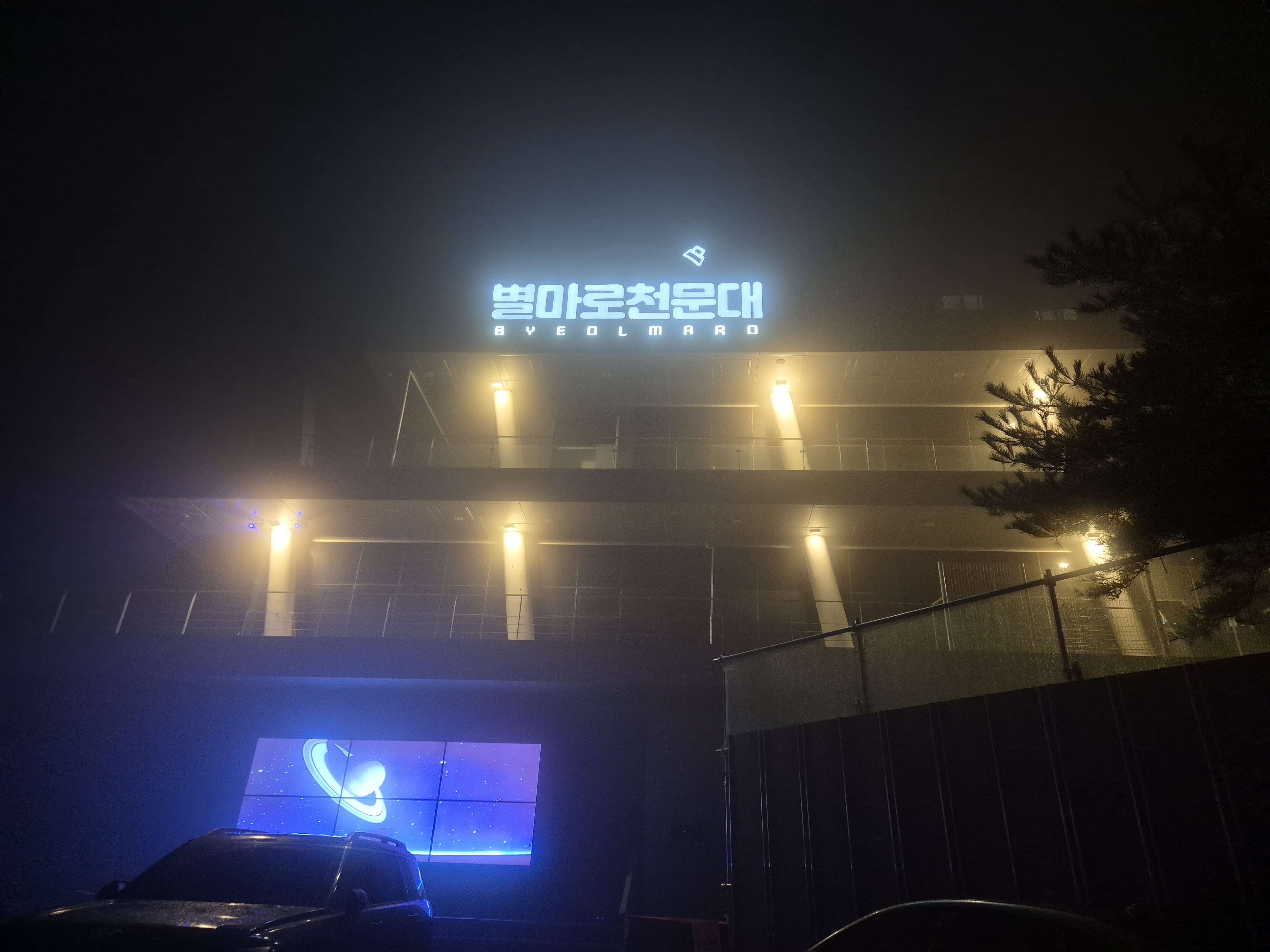 산꼭대기 천문대에 내렸는데, 비가 와서 천문대 간판이 뿌연걸 보니까 오늘 별 보긴 틀렸다 ㅠㅠ