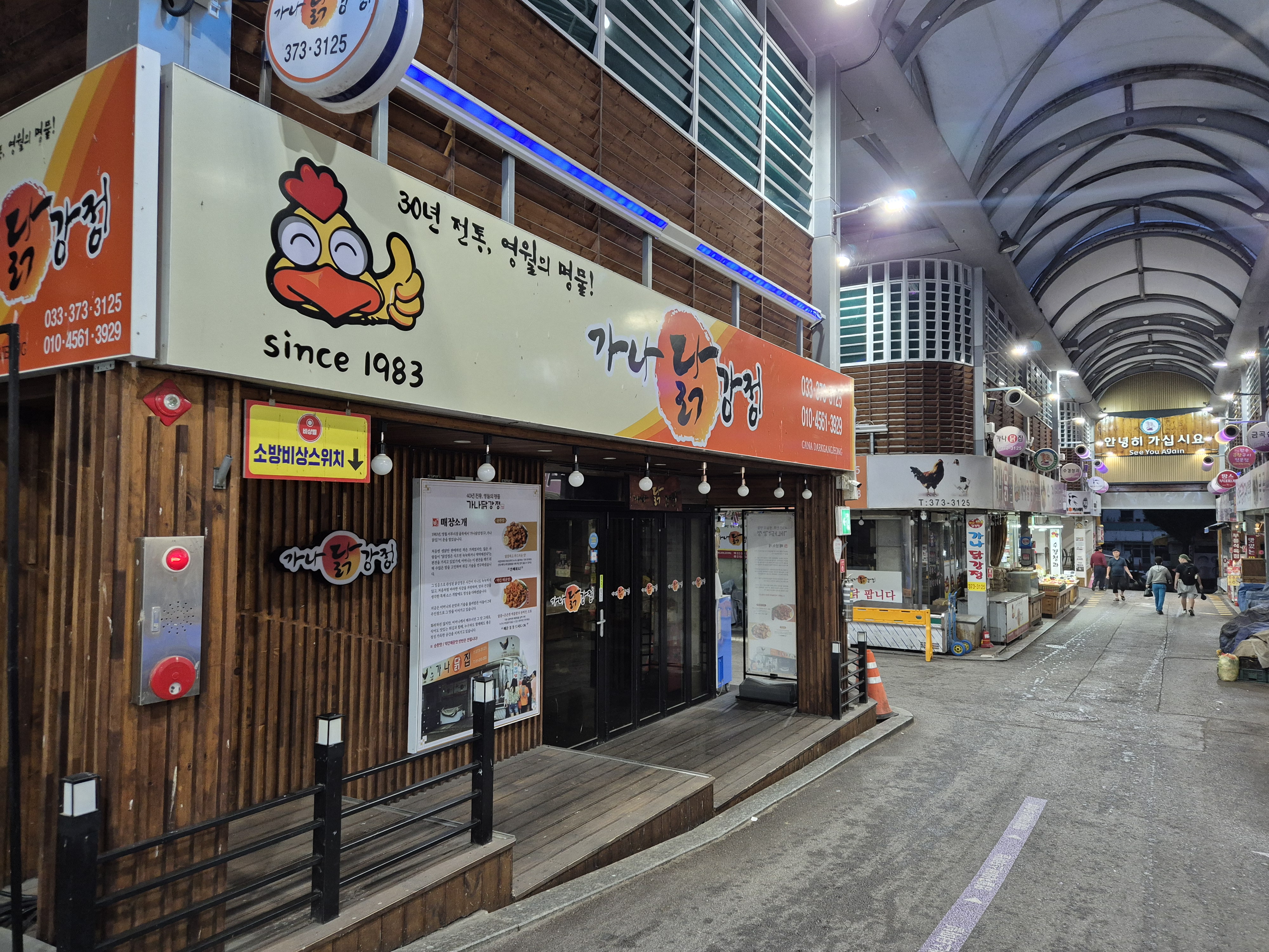 영월에 시장이 여러군데 있었는데, 가장 가까운 서부시장에 닭강정 집이 있어서 바로 진입