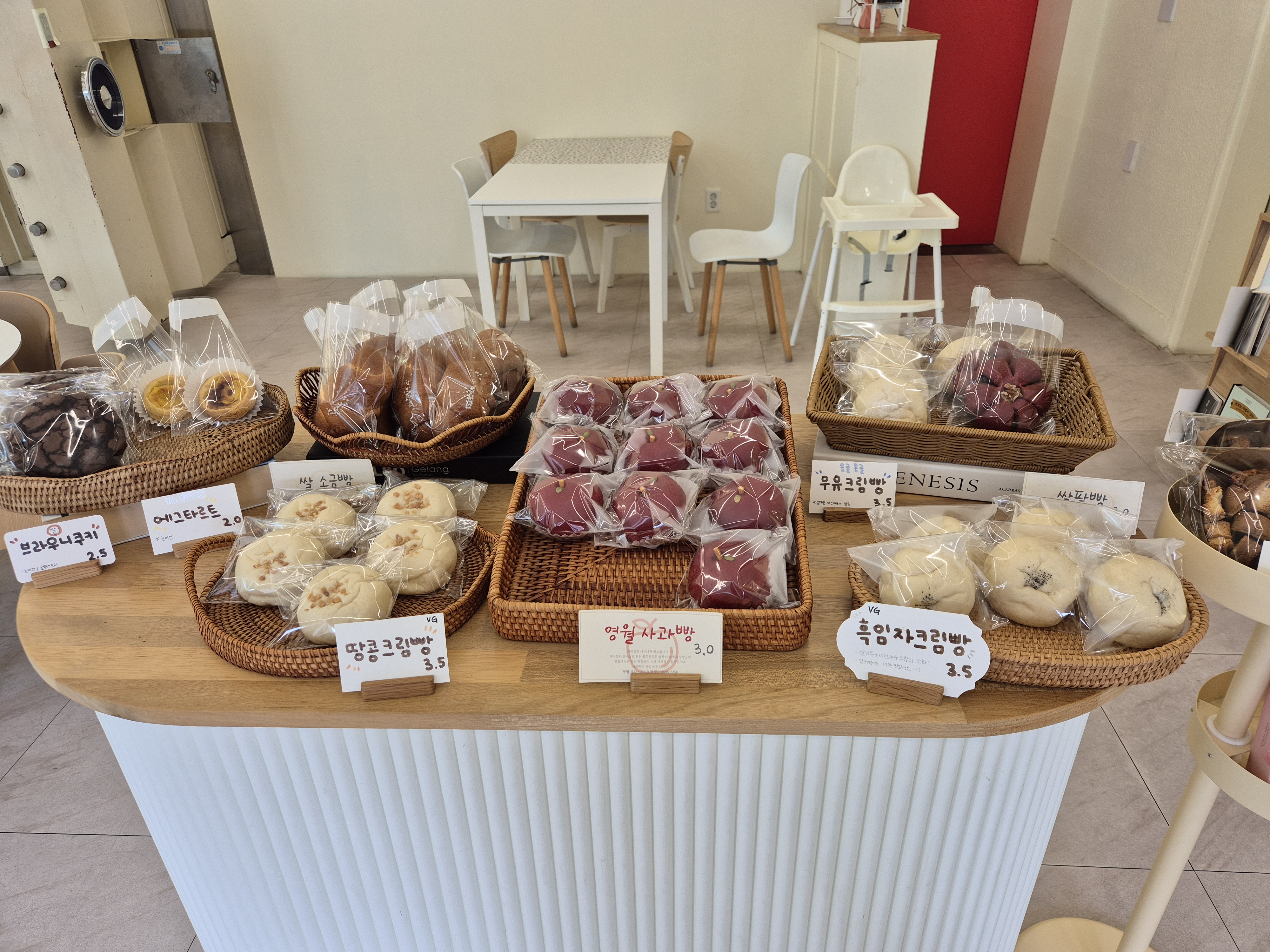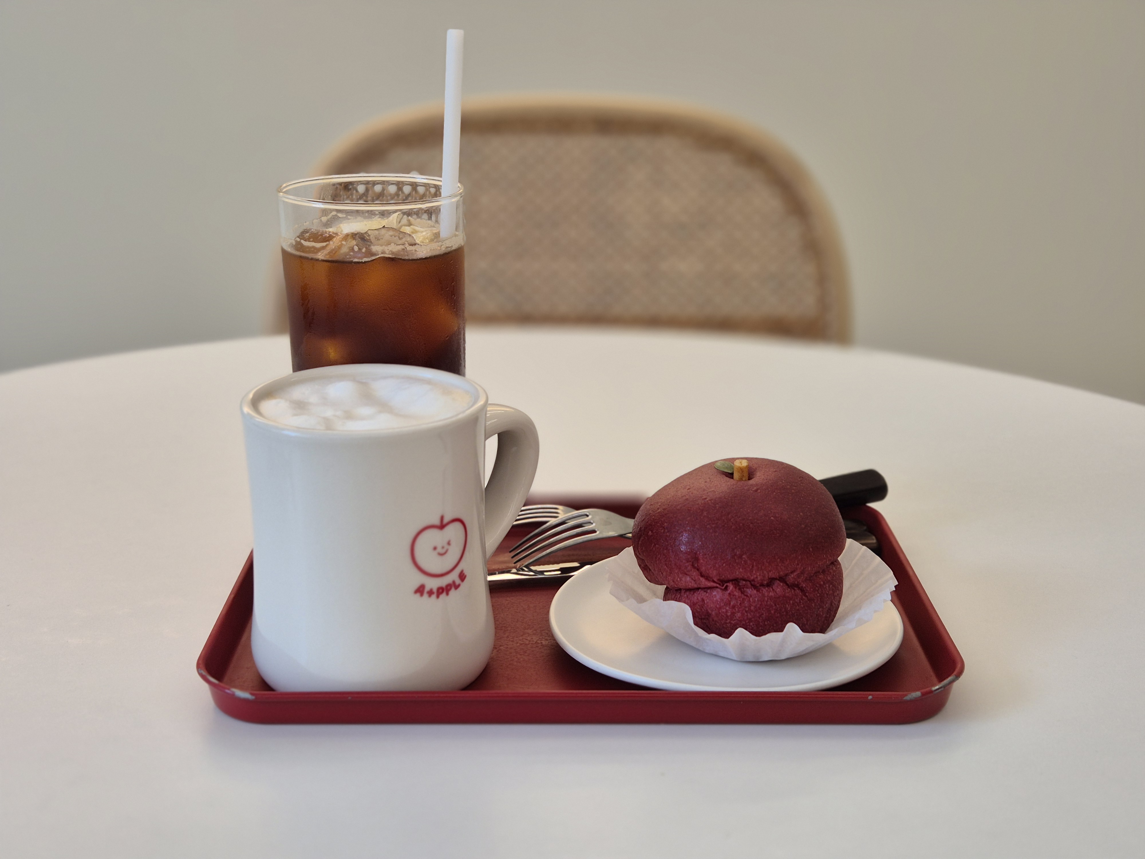 이미 밥을 야무지게 비벼먹고 와서 배불러서 영월 사과빵 1개만 주문해봤다 ㅎㅎ