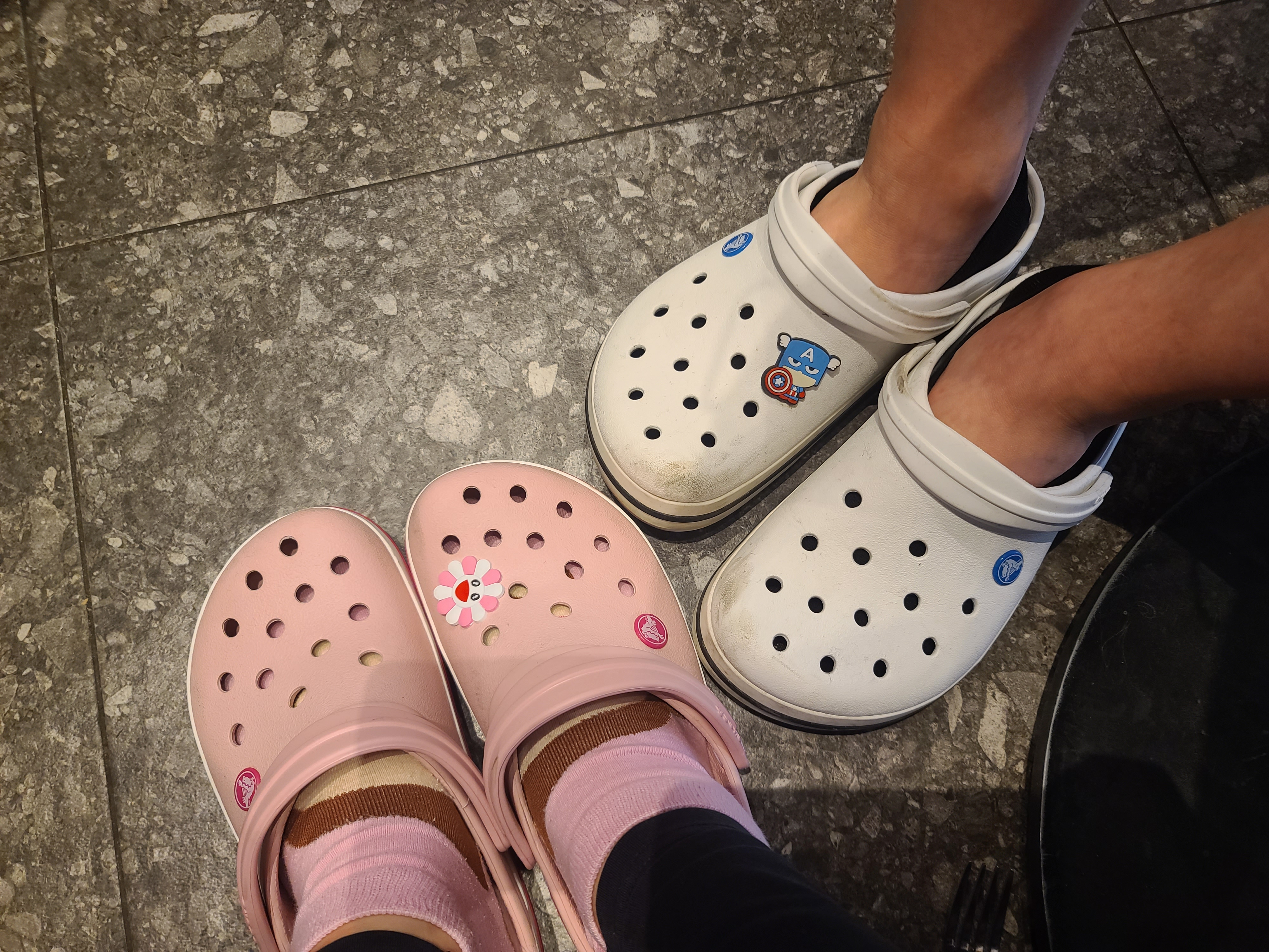 B님이 처음에는 이게 무슨 신발이냐 싶었는데, 신으면 벗지를 못한다며 크록스를 강추해서 본인것과 내것을 사왔다 ㅋㅋㅋ