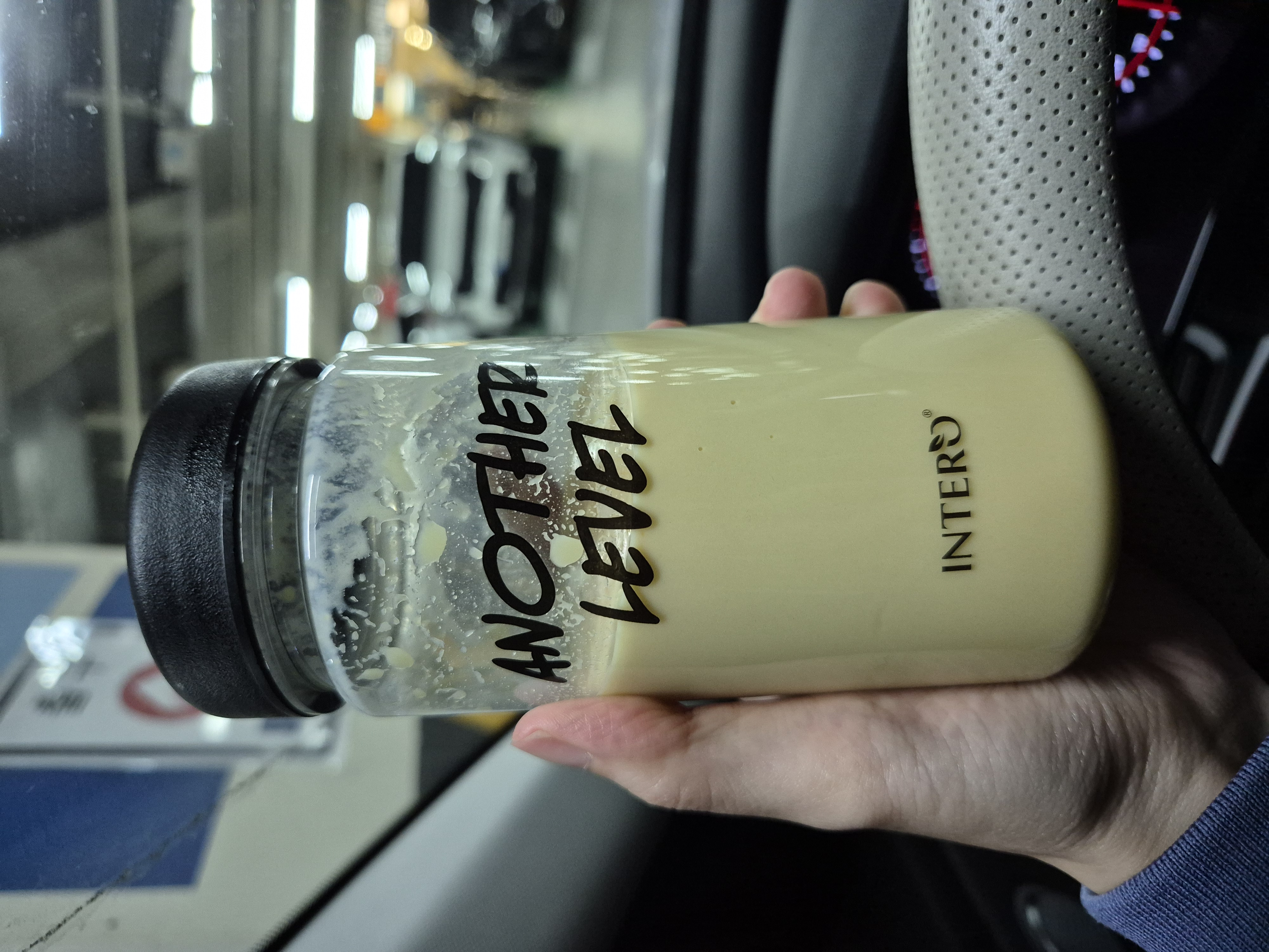 마트에서 장을 보고 나오는 길에 단백질 쉐이크를 한잔했다.