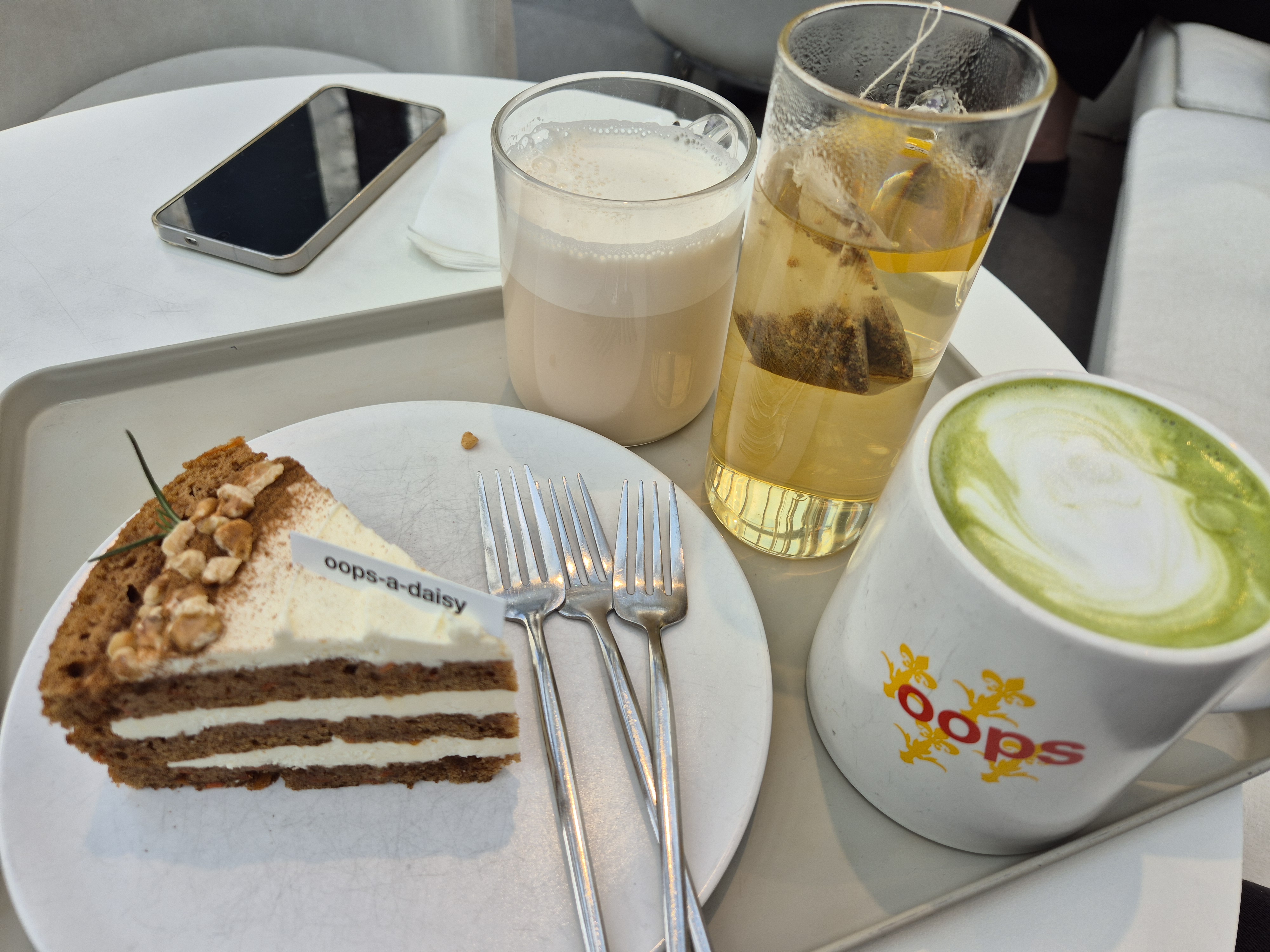 생일을 맞이해서 카페에 앉아 도란도란 얘기를 나누며 조각케이크를 한조각 주문했는데