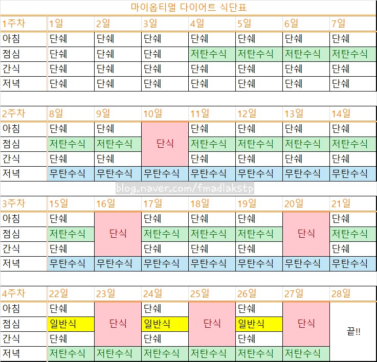 마이옵티멀 다이어트 식단표