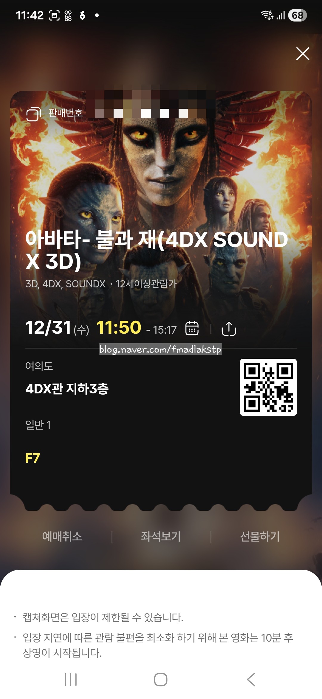 그런데, 이번에 새로 개봉한 아바타3 불과재는 광고도 빵빵하고 4DX관까지 섭렵해서 너무 기대가 되어 예매를 해버렸다. 무려 4DX관!! 꺄앙