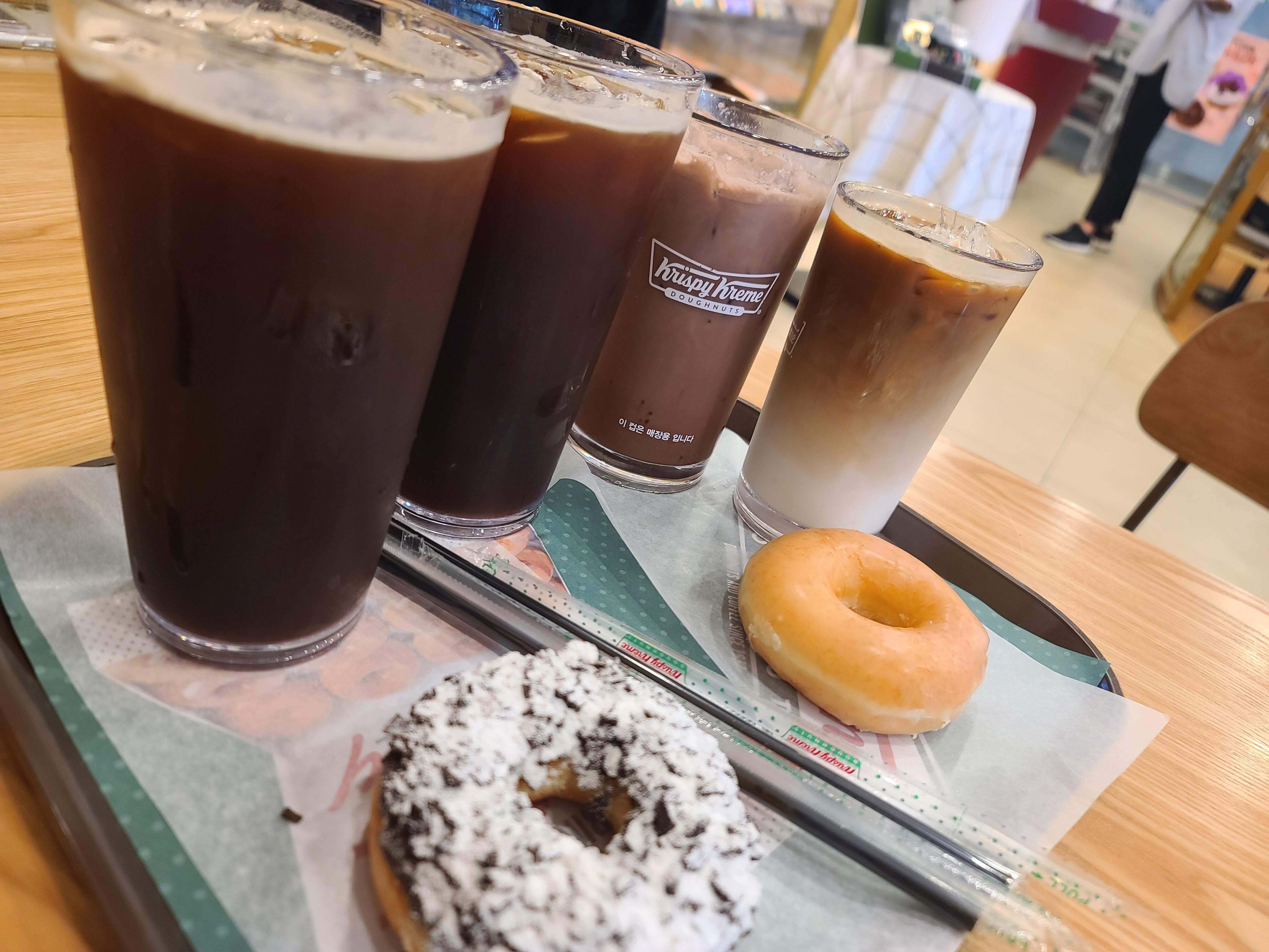 그리고 카페를 가려고 한참을 돌아다녔는데, 한참 카페에 갈 시간이라 그런지 자리가 1도 없어서 5번째의 실패를 맛보고 크리스피크림에 가서 음료를 한잔씩 했다.