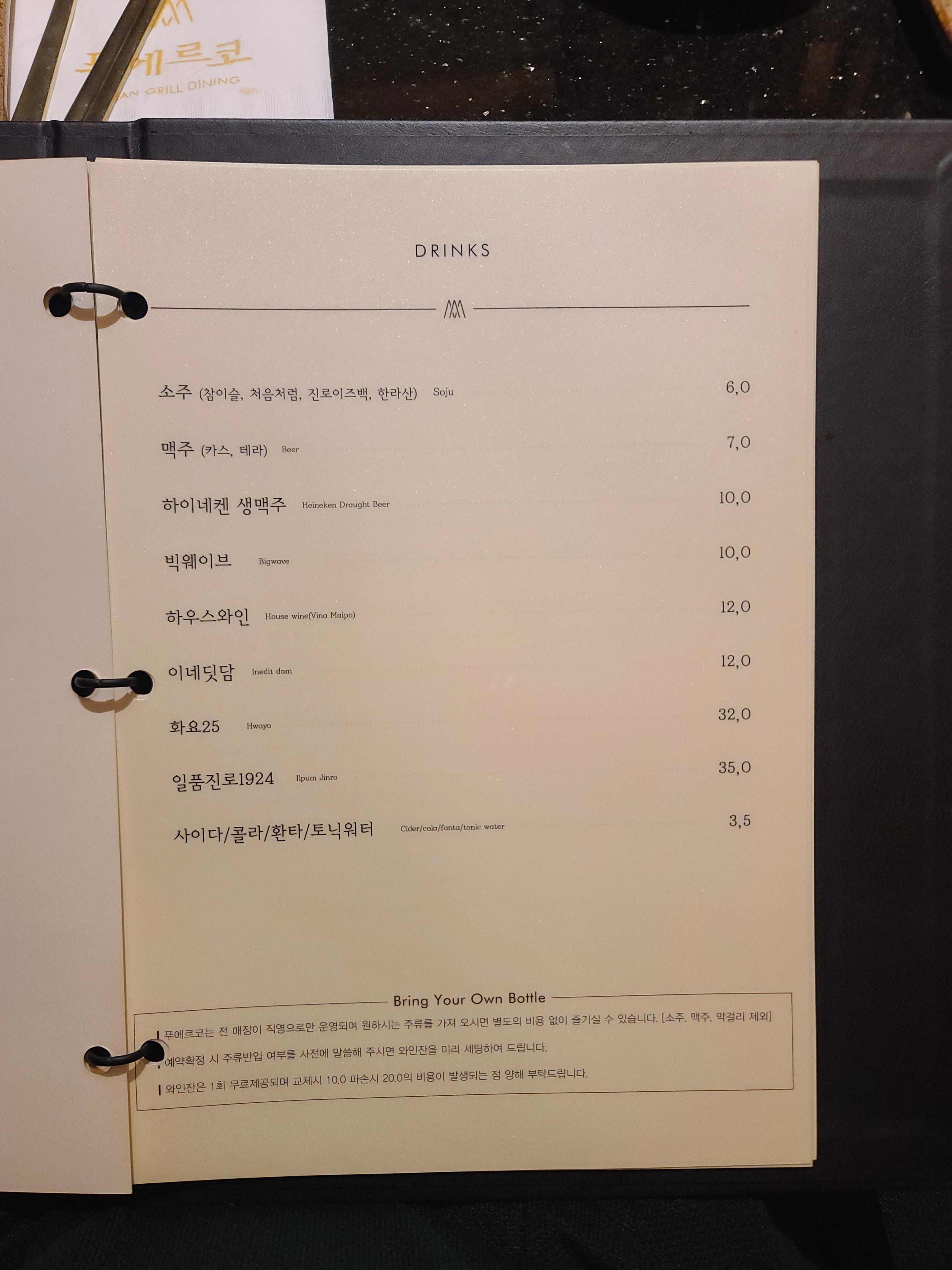 주종을 바꾸면(잔을 바꾸면) 1인당 만원이 추가로 들어서 약간 고민되지만, 한종류로 쭉~ 마실거면 콜키지도 좋을듯