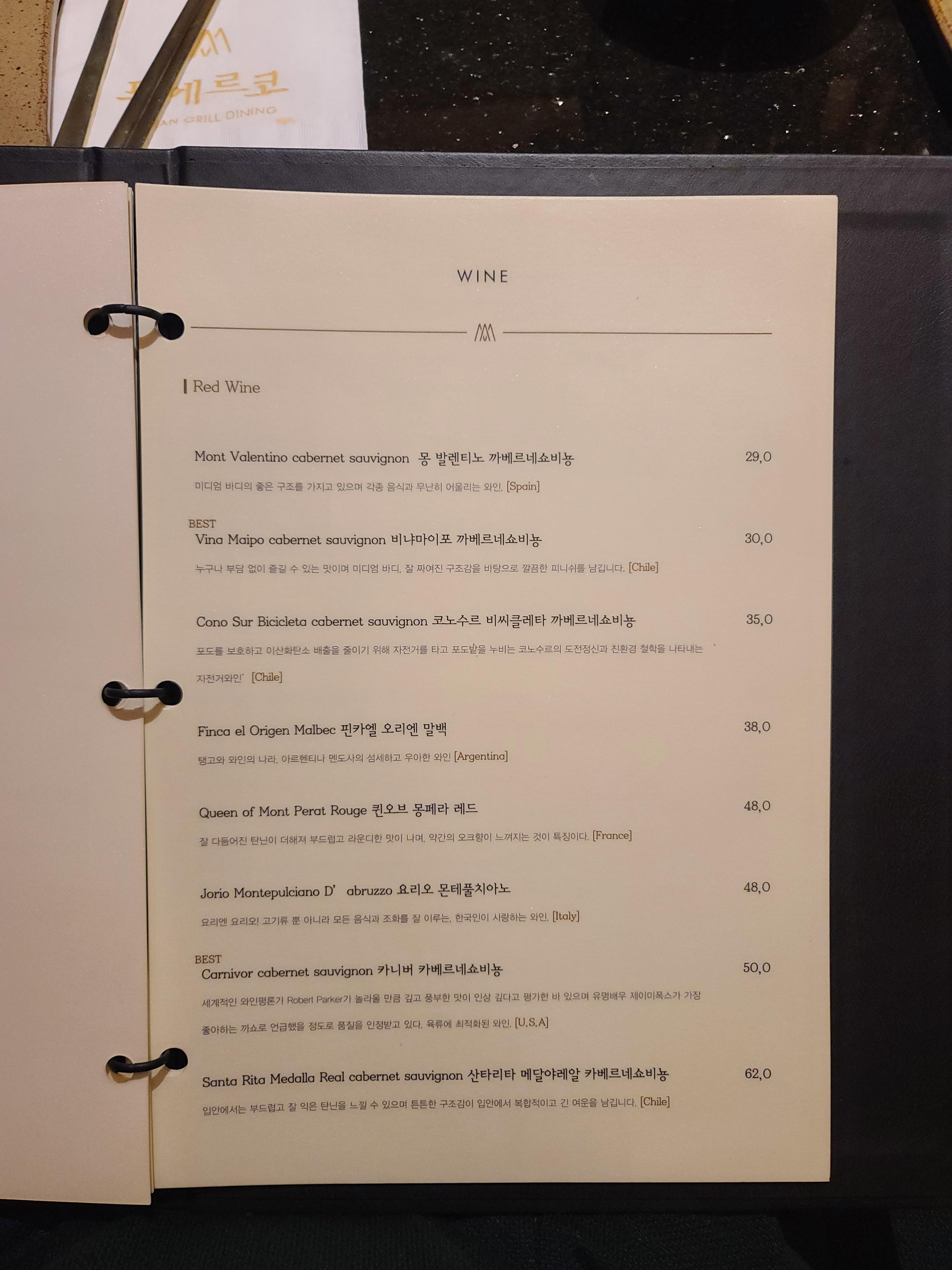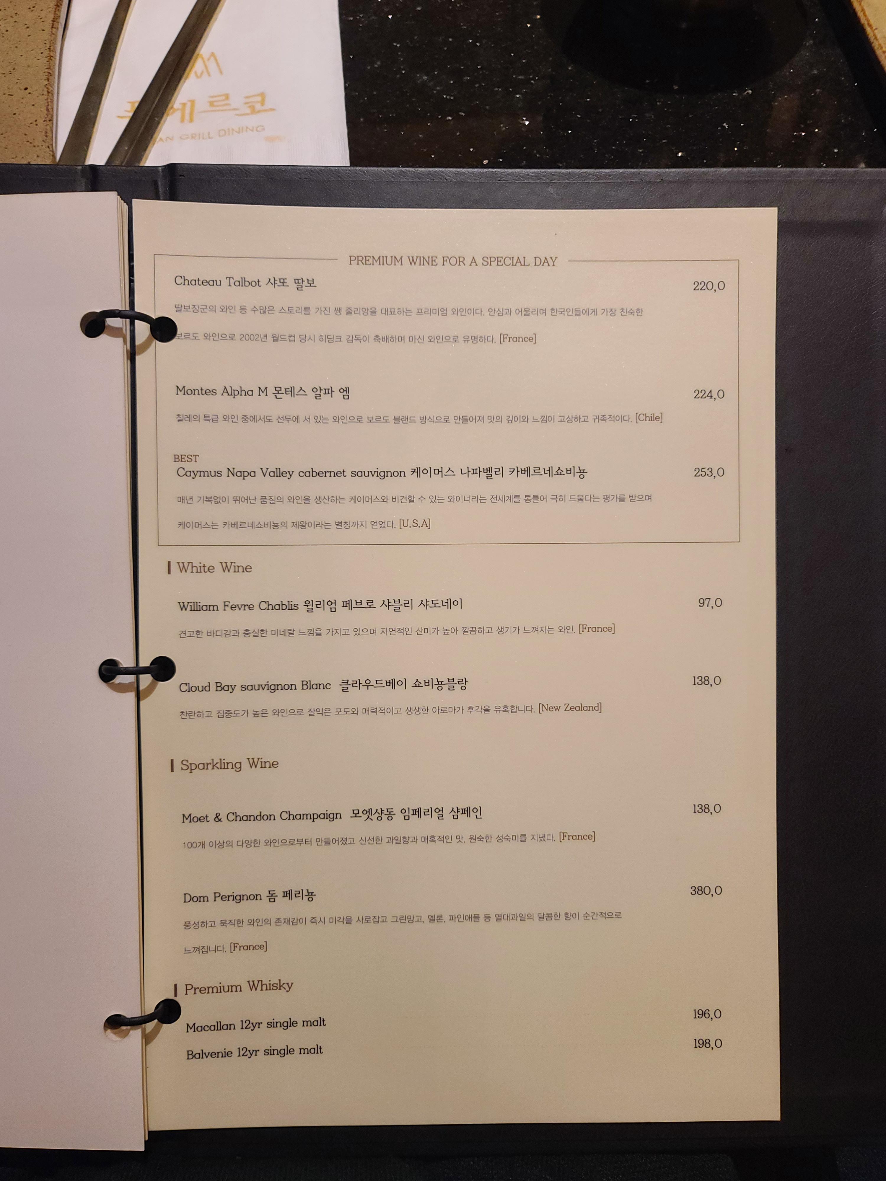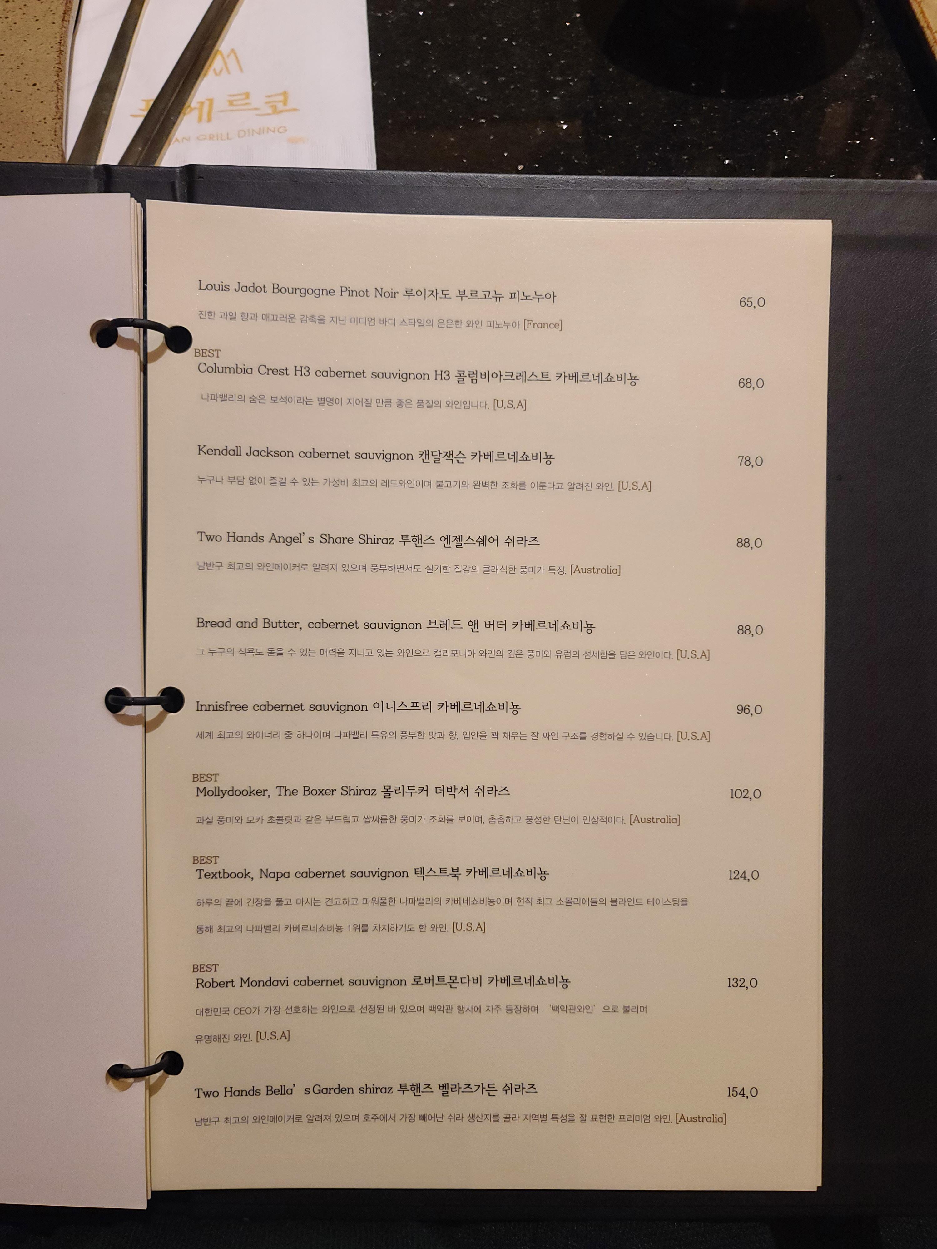 외에 점심메뉴랑 술. 그리고 와인이 엄청 다양했다.