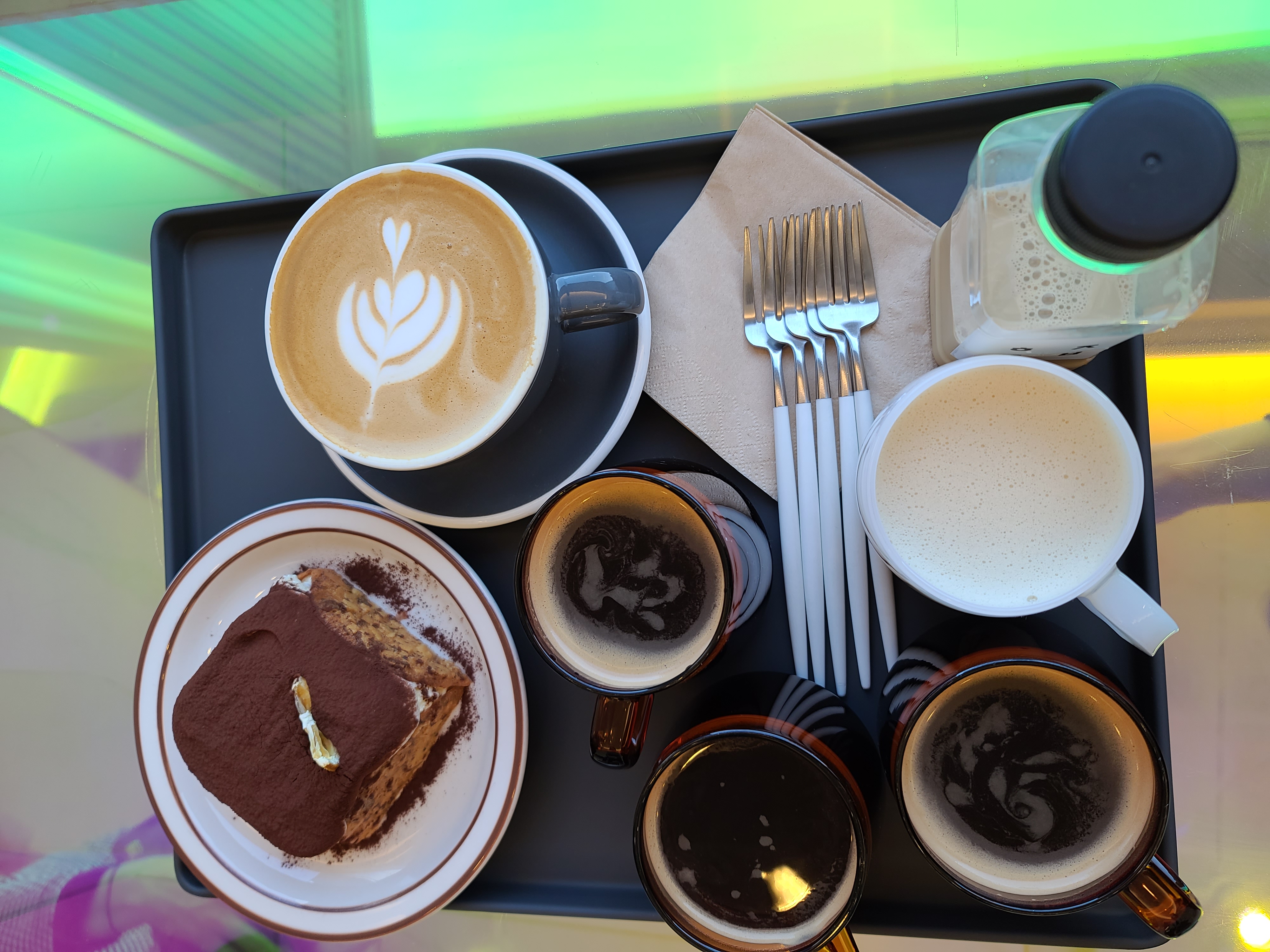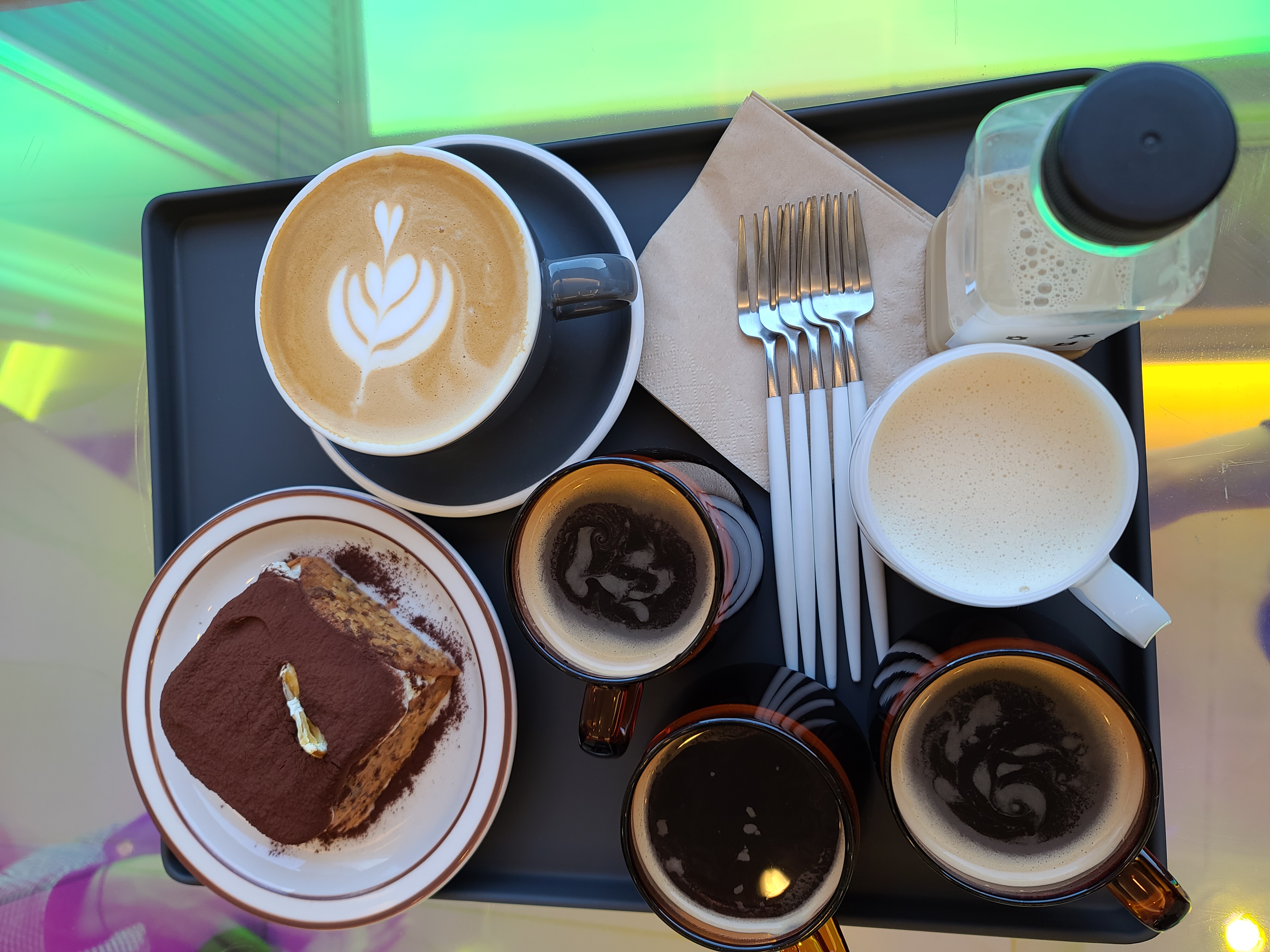 라떼, 아메리카노, 밀크티, 티라미수 이렇게 주문을 했다.