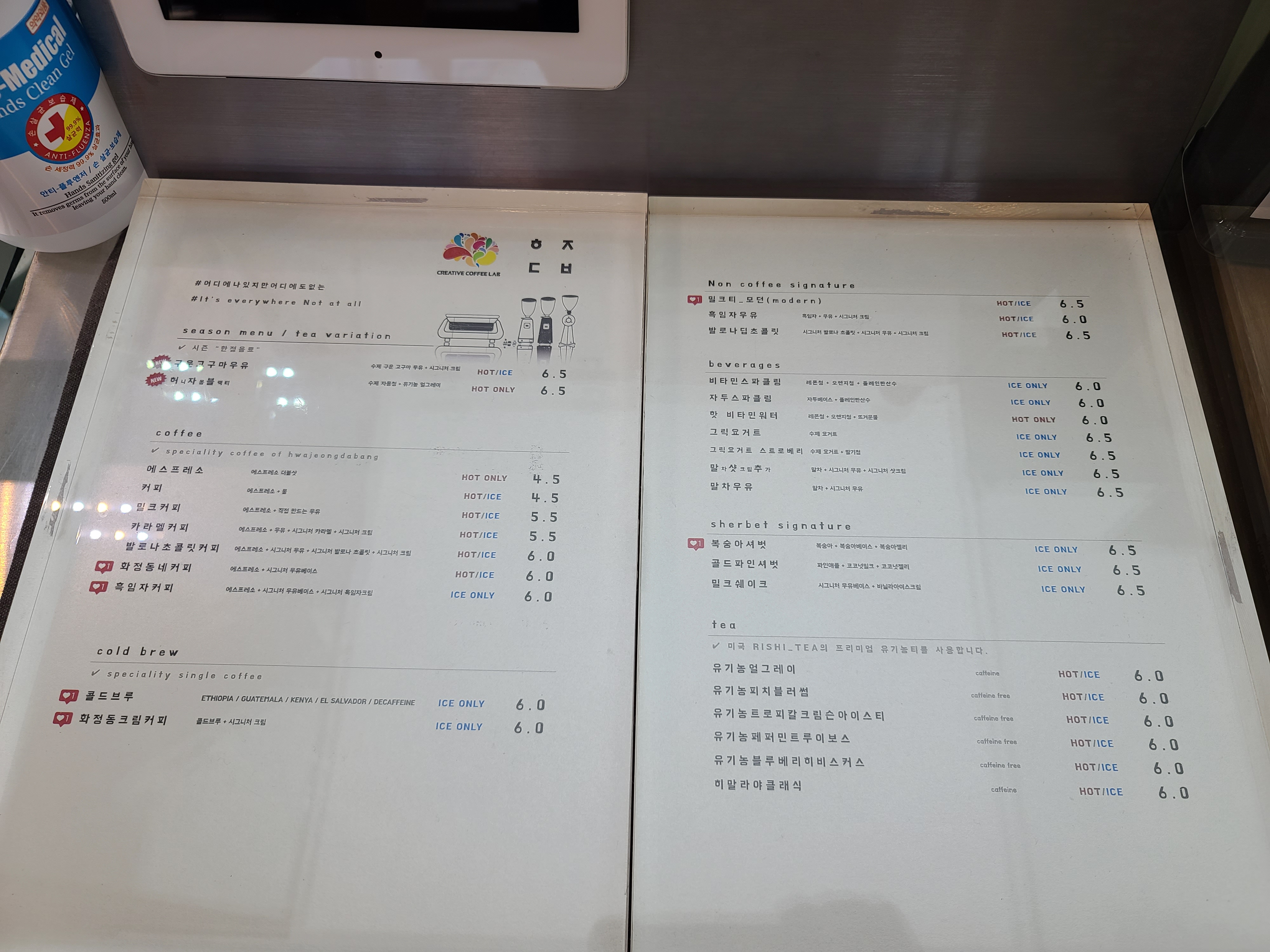 커피대회에서 상 받으신 사장님 솜씨를 느낄 수 있는 커피와 논커피 음료들.