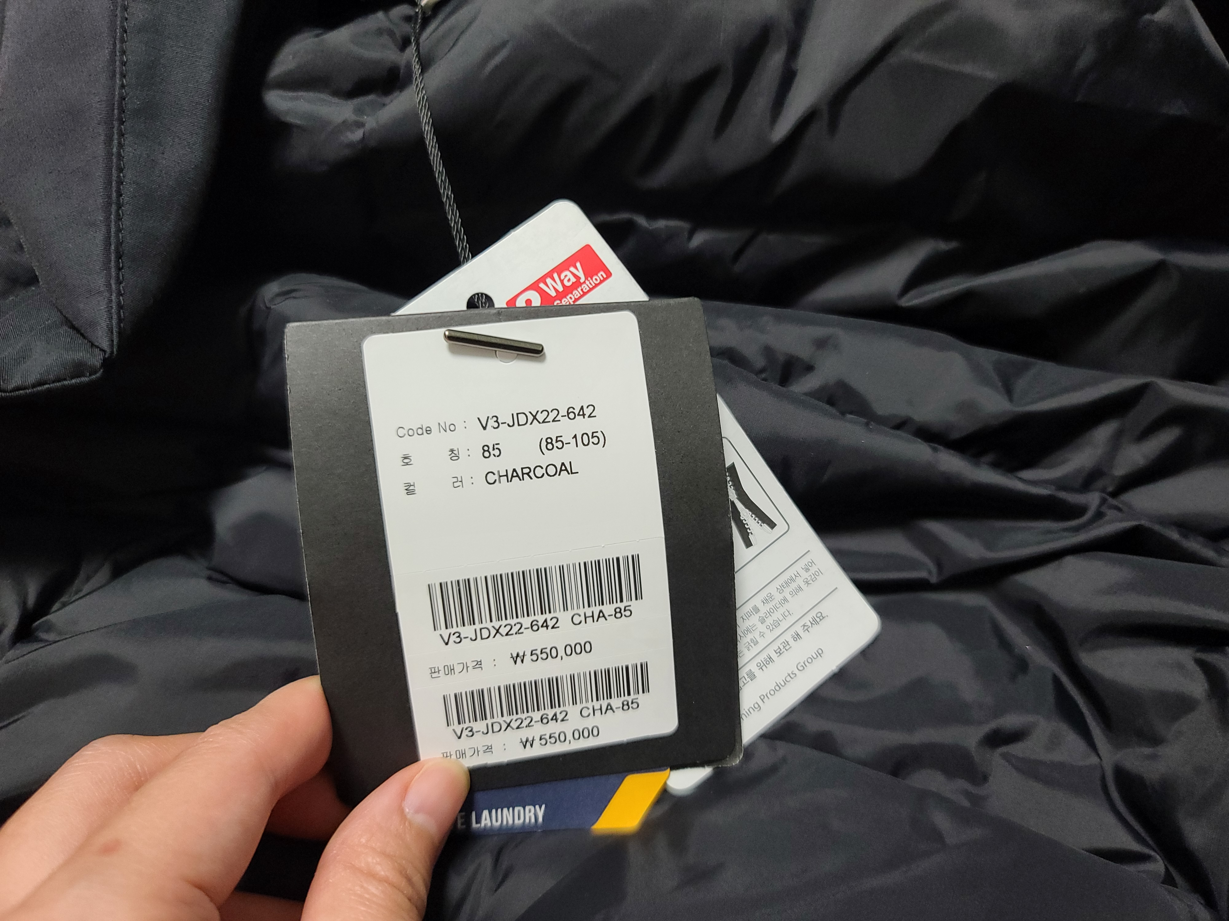 상자에서 바로 꺼낸거라서 숨이 죽어있는데, 옷걸이에 걸어놓으니 거위털이 부풀어 빵빵해졌다 ㅋㅋ