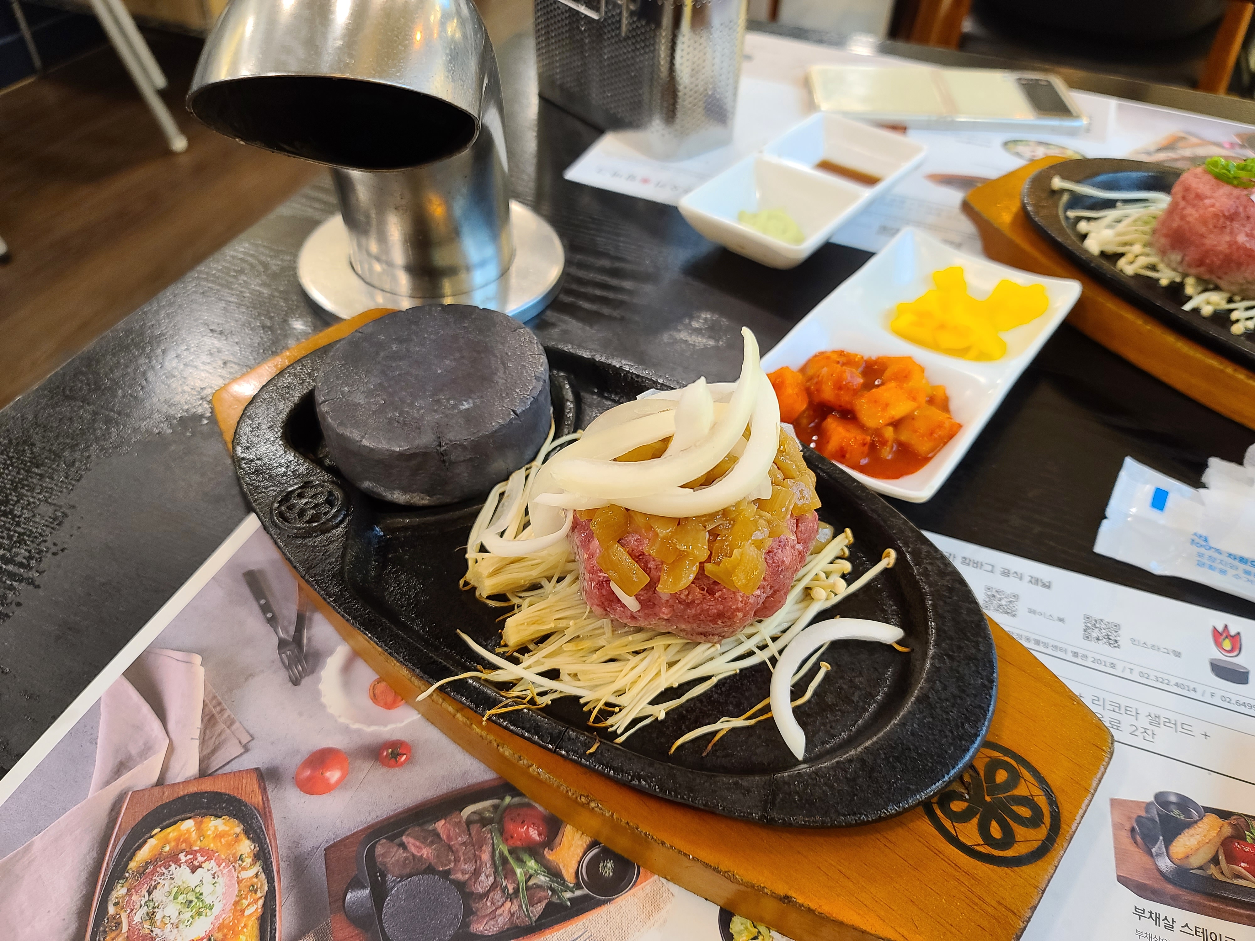 점심시간에는 스테이크덮밥, 함바그라면세트 이런걸 주문하면 안 굽고 바로 먹을 수 있다.