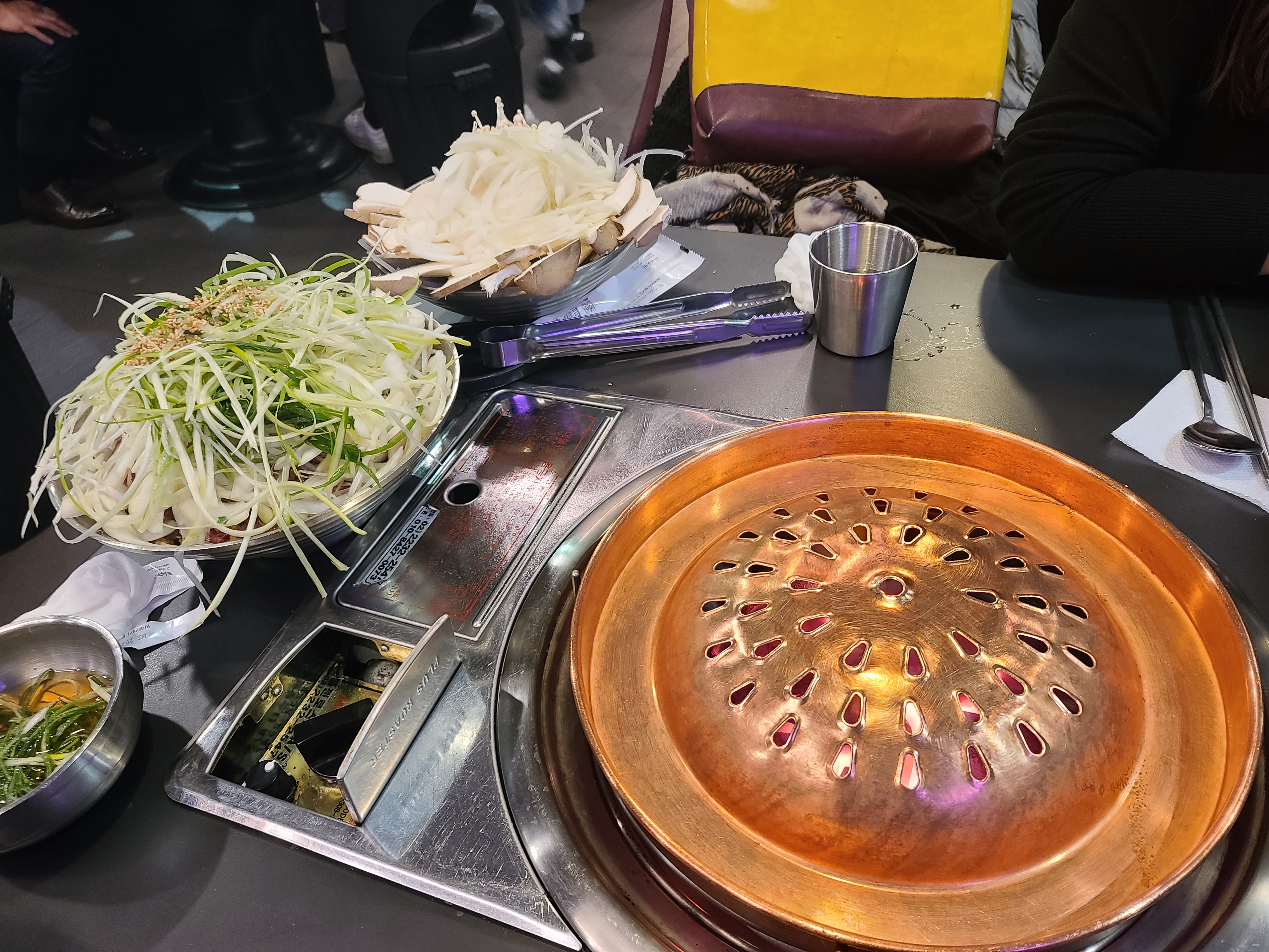 고기를 주문하면 화로를 넣어주시고 철판을 올려주신다.