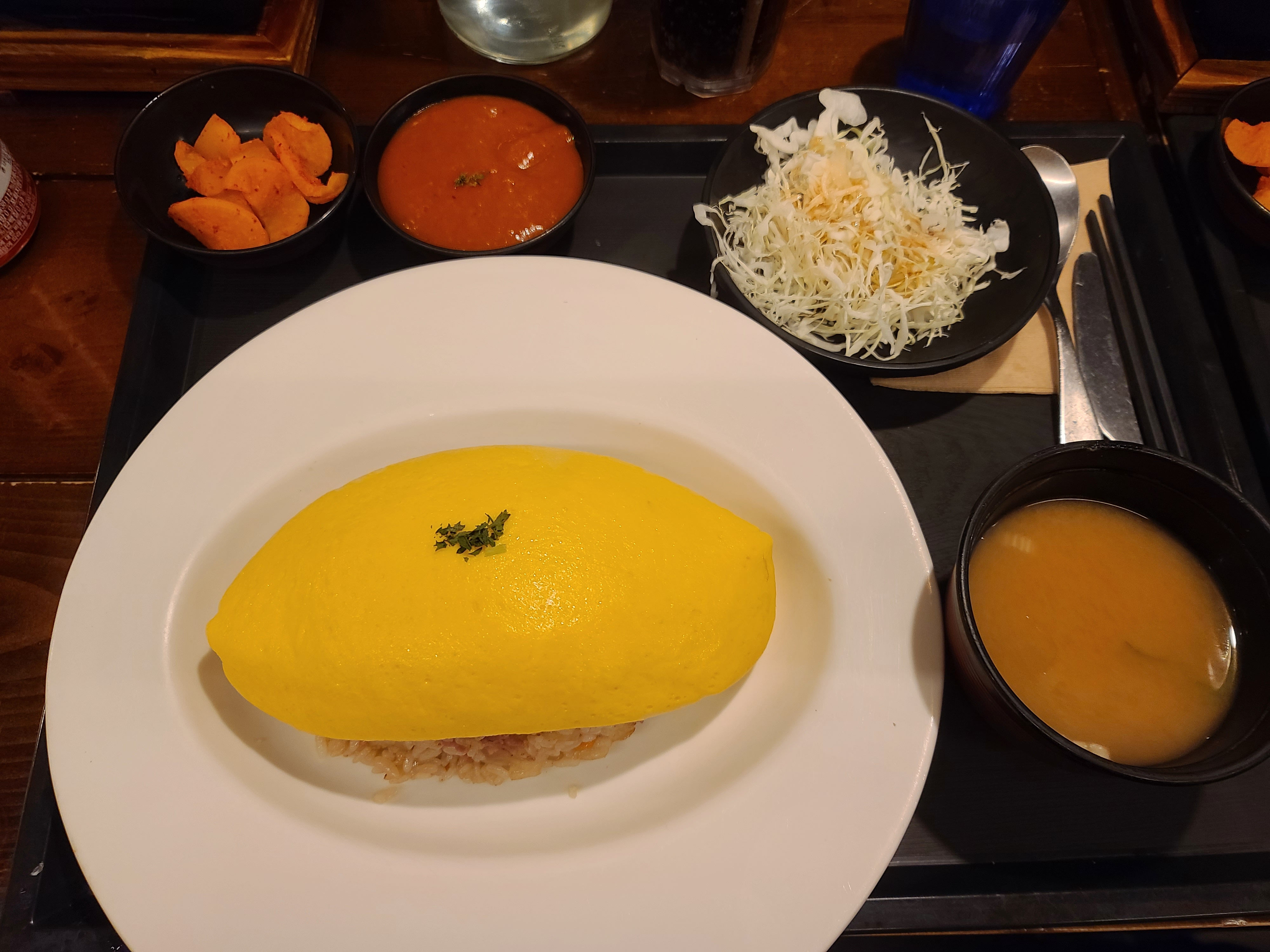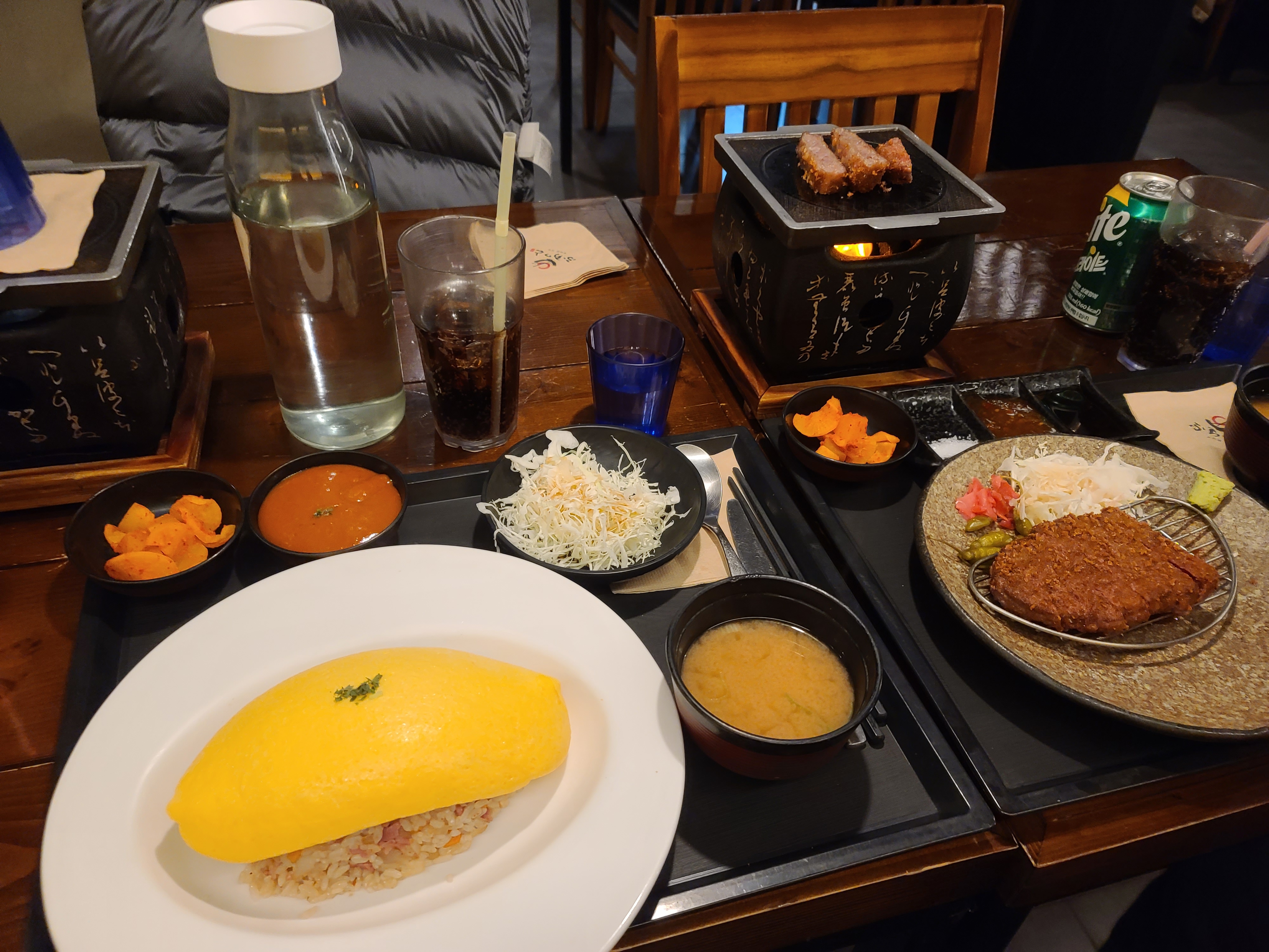 그런데 밥이 약간 동남아에서 먹은 향신료 볶음밥 느낌이라서 오므라이스 밥보다 규카츠에 있는 밥을 더 많이 먹었다 ㅋㅋㅋ