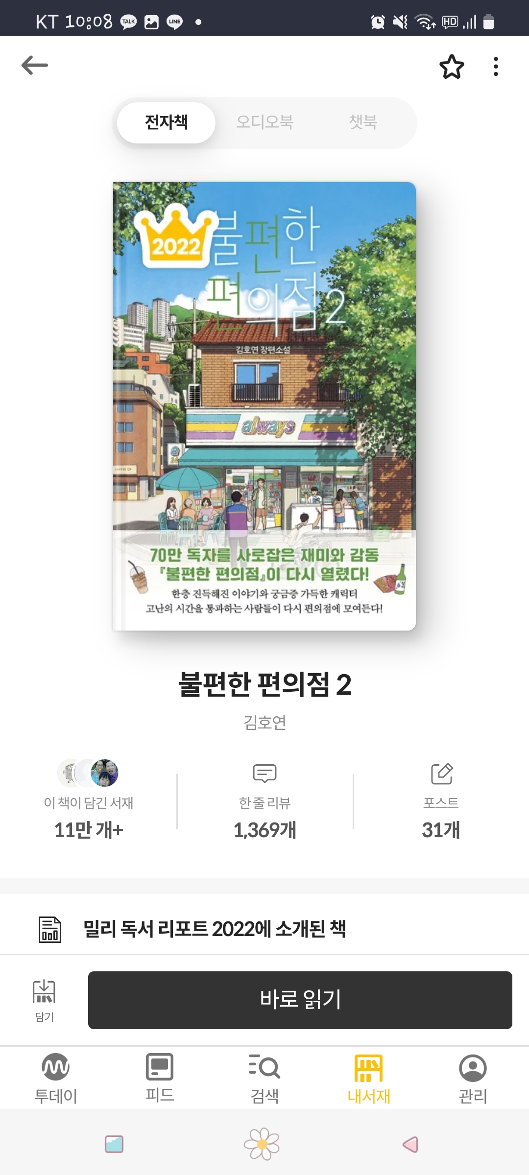 불편한 편의점은 총 2권으로 구성된 책이었고, 1편이 꽤나 감동적이라서 2편까지 다운을 받았다.