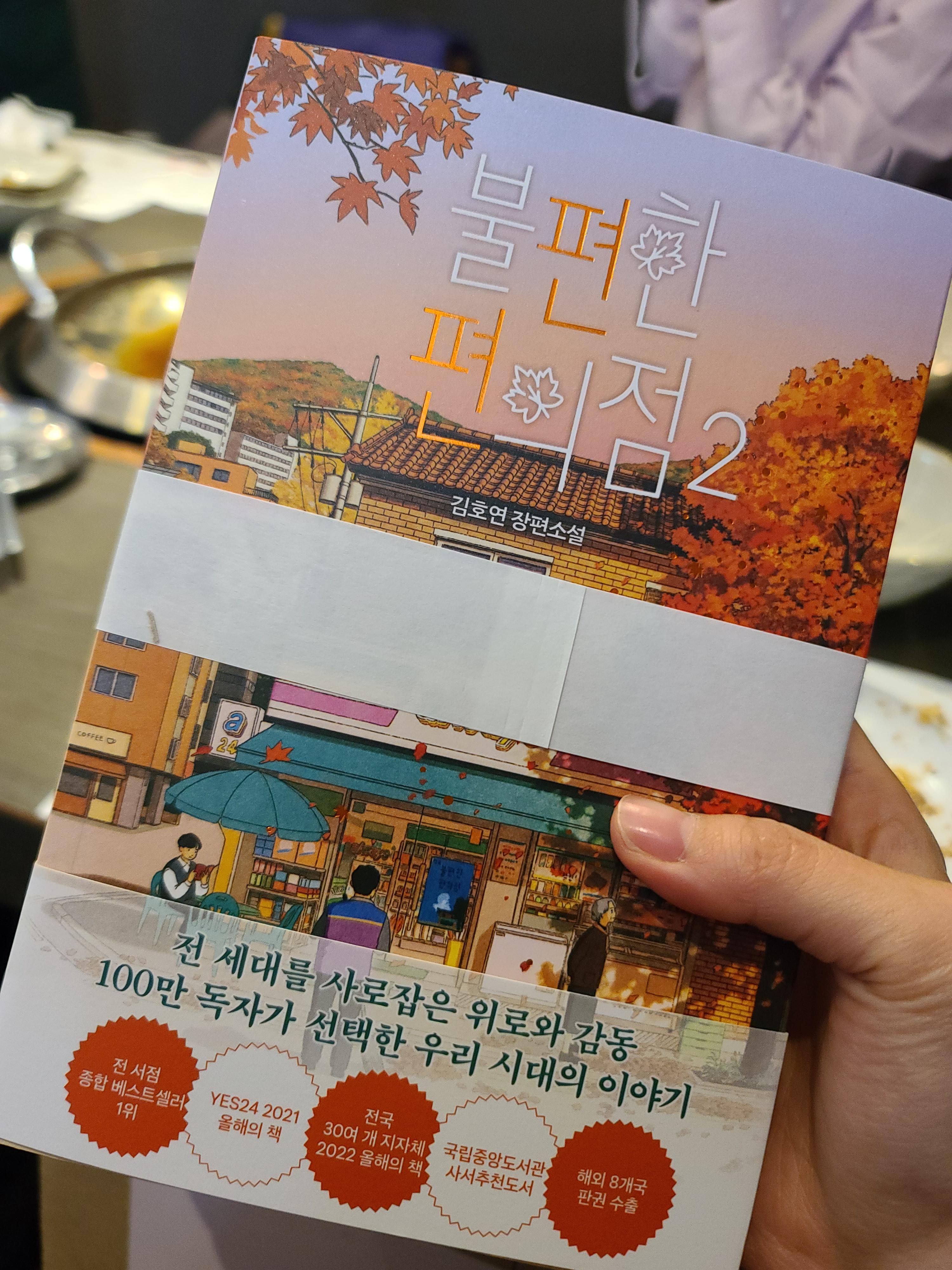 내가 이미 불편한 편의점을 2권 다 읽었는데, 하필 그 책을 뽑아서 선물 내신분도 당황 받은 나도 당황 옆에 있던 사람도 당황!!하면서 선물이 돌고 돌았던 그날 ㅋㅋㅋ 나중에 생각하면 너무 웃길거 같아서 사진을 같이 올려둔다.