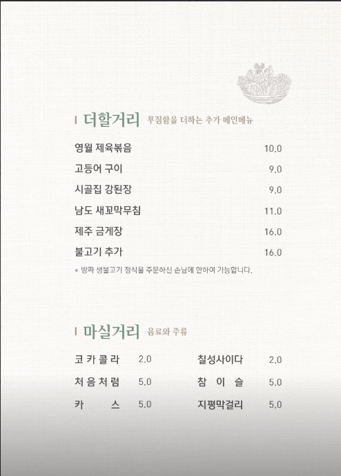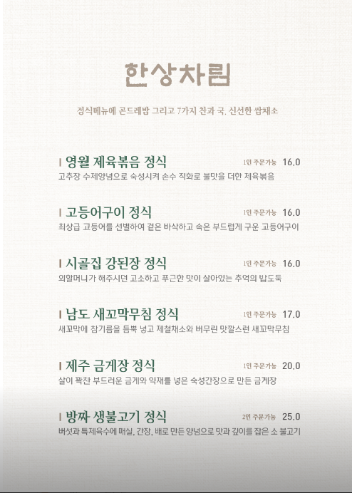 곤드레밥 한창차림이 기본 \16,000 이라니... 살짝 비싼거 아닌가 하는 생각이 들수 있다.